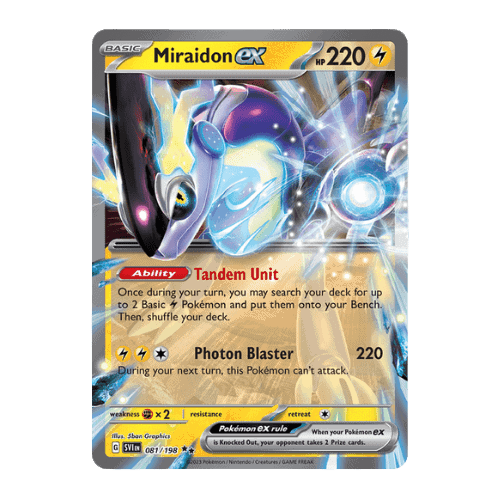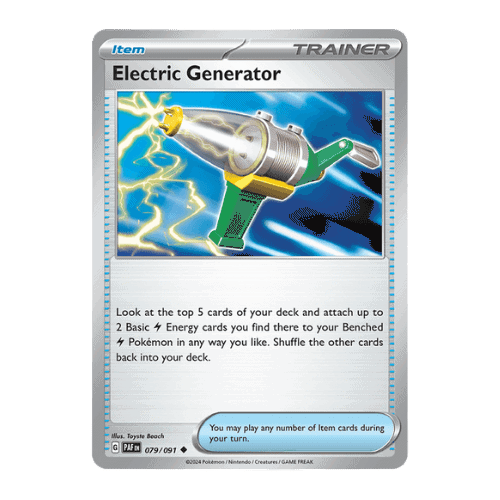 Search for Electric Pokémon to thin your deck using Miraidon ex. Then use Electric Generator to attach Lightning Energy from your deck onto your Pokémon.
